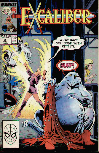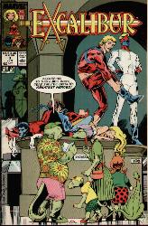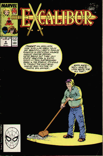 For those familiar with the humour element that became a feature of Excalibur's covers, it may seem strange to learn there was a very hesitant genesis. Dark and gritty comics were in vogue and when Terry Kavanagh asked me to include humour on the covers I certainly wasn't confident it would work.