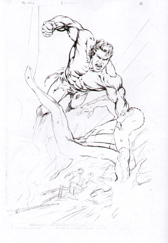 I changed panel four in the final version, making the Atom proportionately larger so he wouldn't be