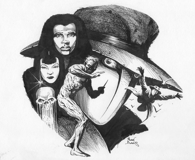 illustrations in a pulpish style for
